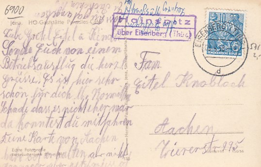 Landpoststempel Hainspitz Jena Gaststätte Paradies-Cafe