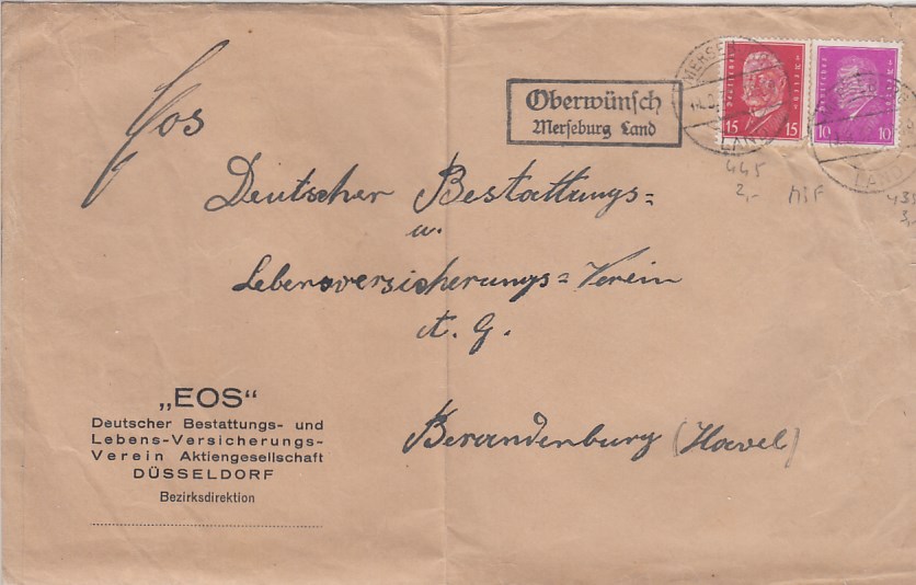 Landpoststempel auf Großbrief Oberwünsch EOS Düsseldorf