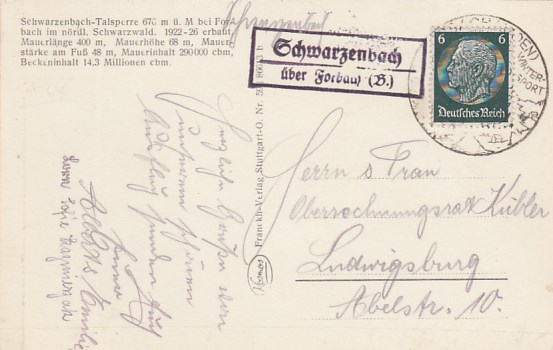 Landpoststempel Schwarzenbach Forbach Talsperre