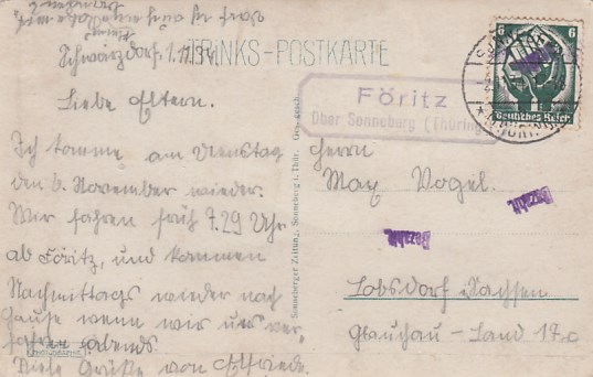 Landpoststempel Föritz Sonneberg Thüringen AK Steinbach