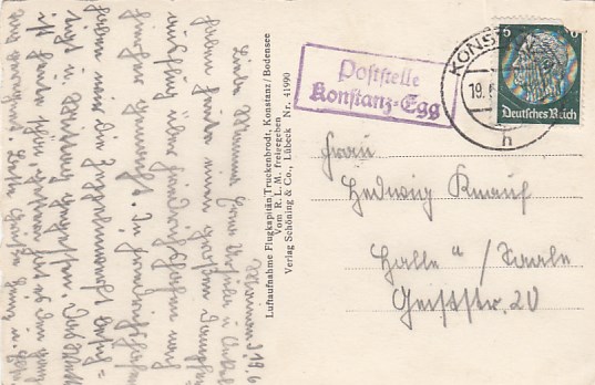 Landpoststempel Poststelle Konstanz-Egg Luftbild Insel Mainau