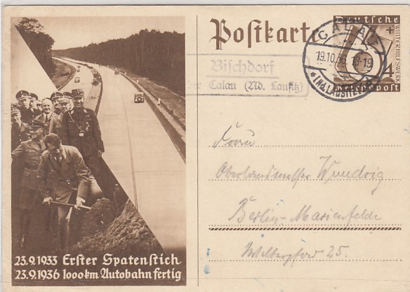 Landpoststempel Bischdorf Calau Ganzsache Reichsautobahn Propaganda
