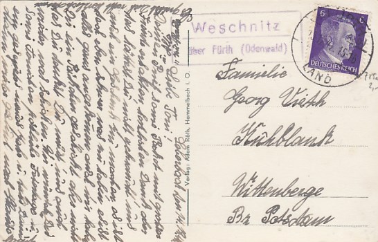 Landpoststempel Weschnitz Fürth Odenwald AK Hammelbach