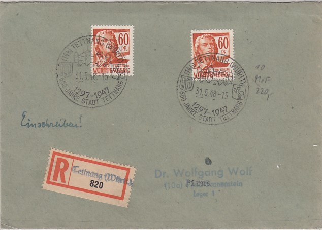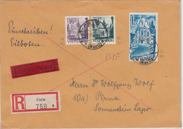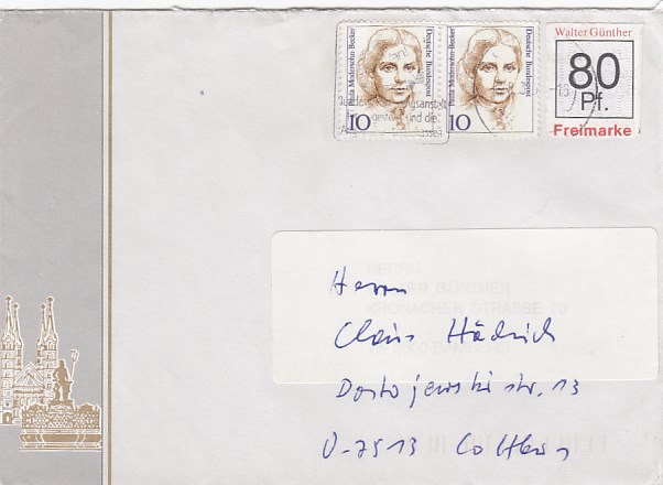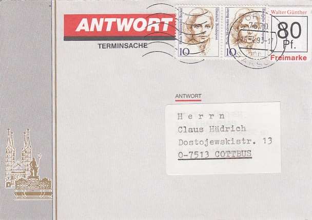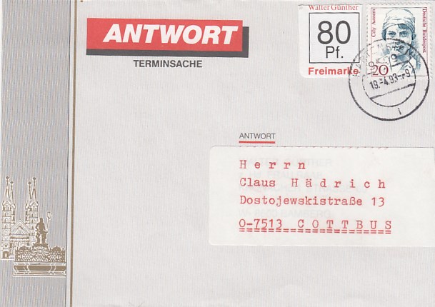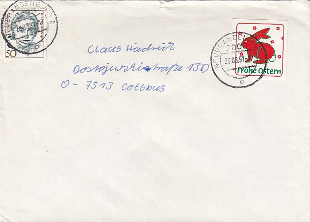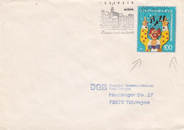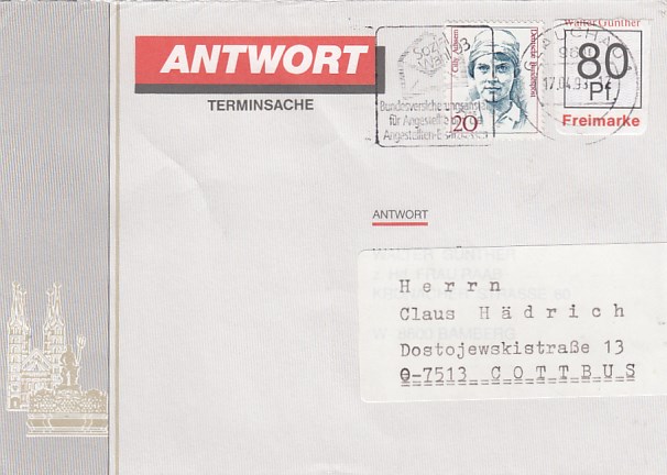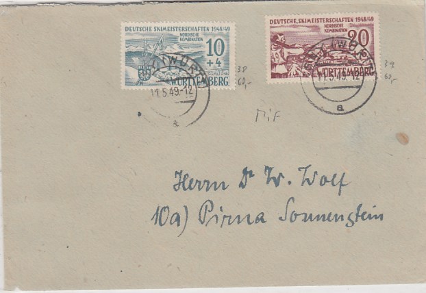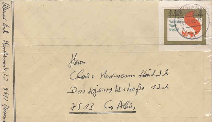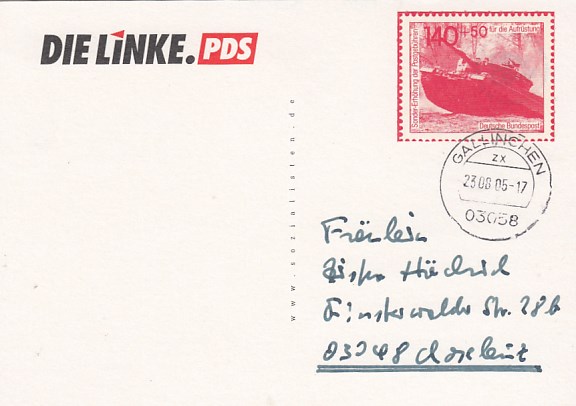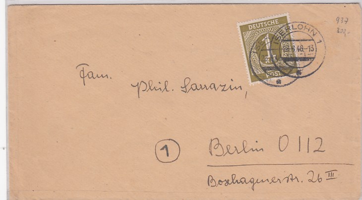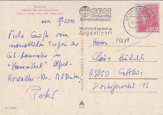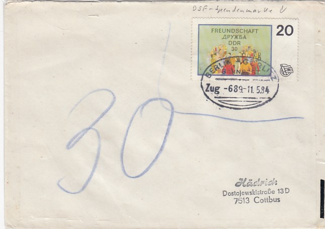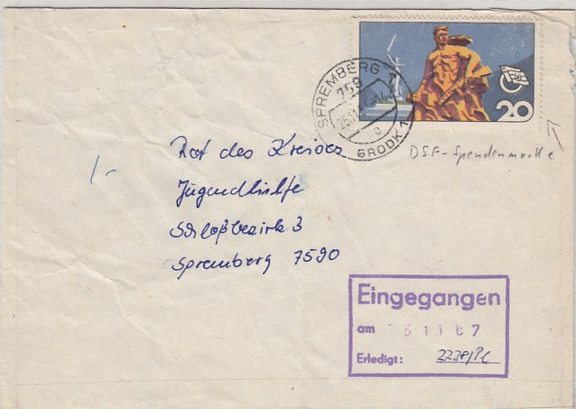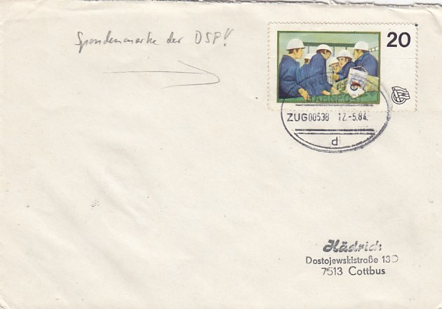 Spendenmarke auf Brief Bahnpoststempel Berlin-Görlitz