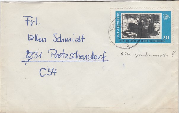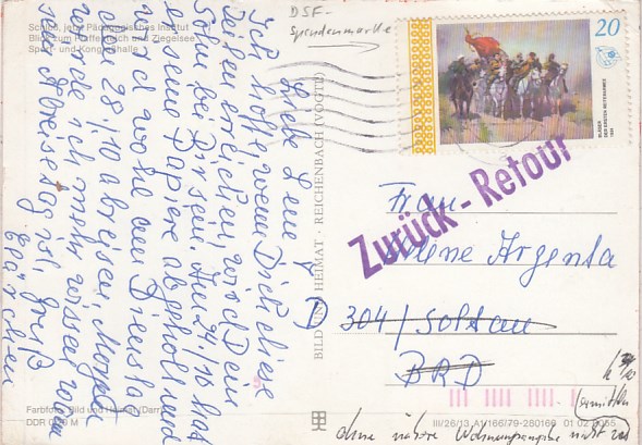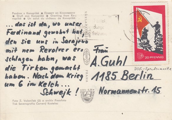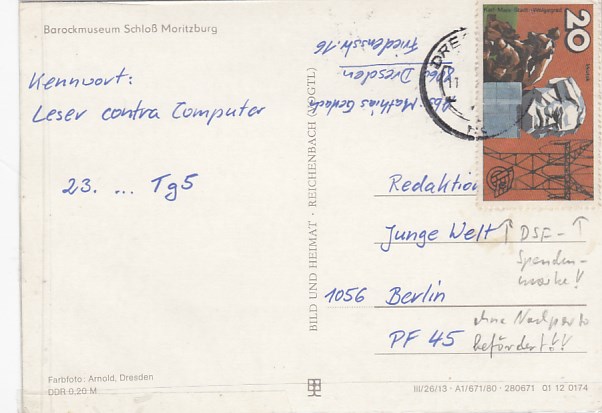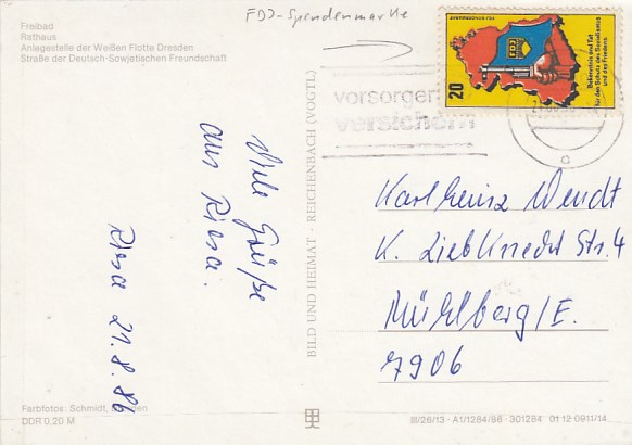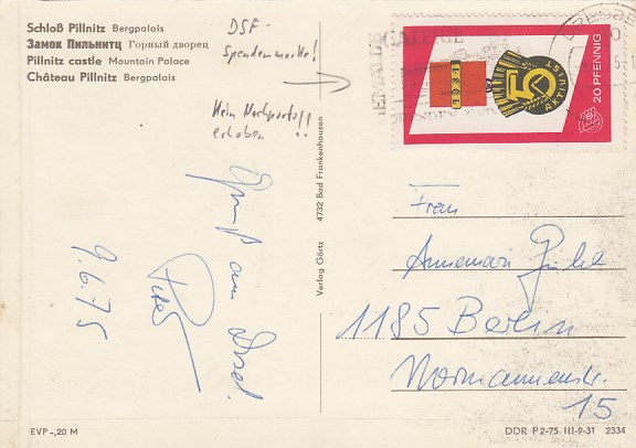 Spendenmarke DSF DDR auf AK Schloß Pillnitz