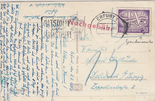 Spendenmarke FDJ Raumfahrt AK Erfurt
