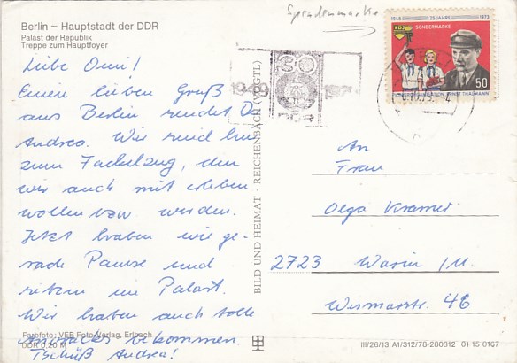 Spendenmarke FDJ AK Berlin Mitte Palast der Republik