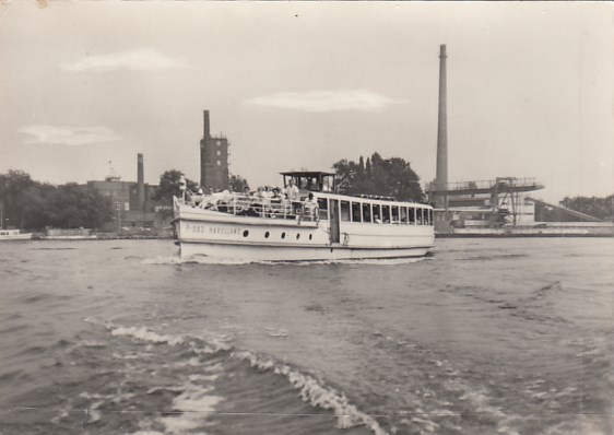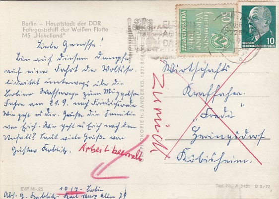 Spendenmarke DDR Volkssoldarität AK Berlin Industrie Motorschiff Havelland
