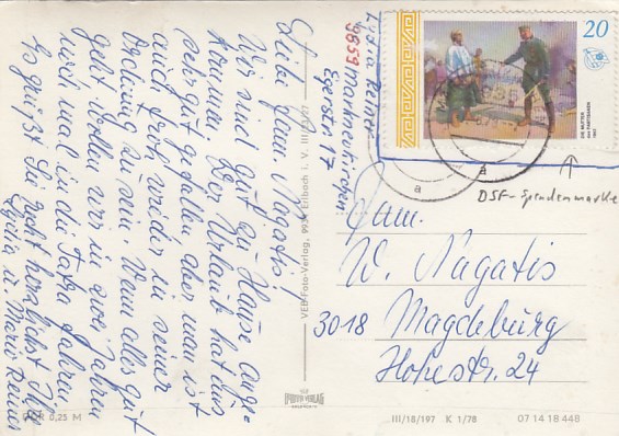 Spendenmarke DSF DDR auf AK Autobahnraststätte Schkeuditzer Kreuz