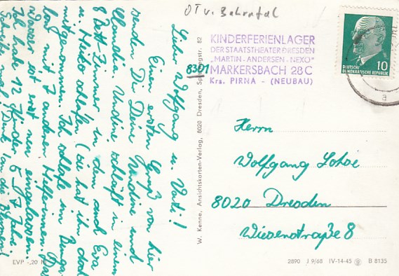 Stempel Kinderferienlager Pionierlager VEG Schwarze Pumpe Rennersdorf AK Stolpen