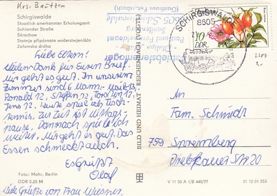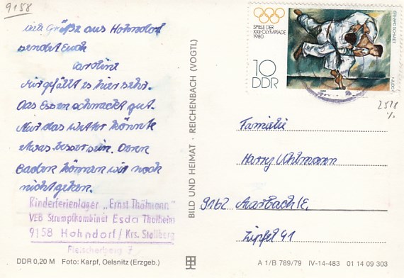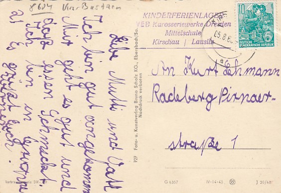 Stempel Kinderferienlager Pionierlager Schönberg Adorf Vogtland