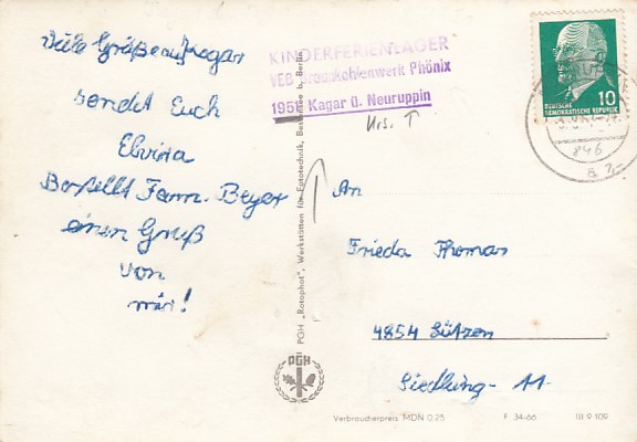 Stempel Kinderferienlager Pionierlager Schwedt Penzlin-Werder
