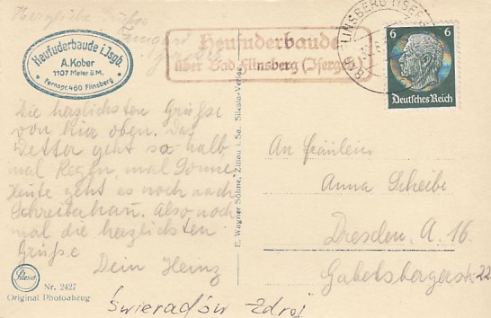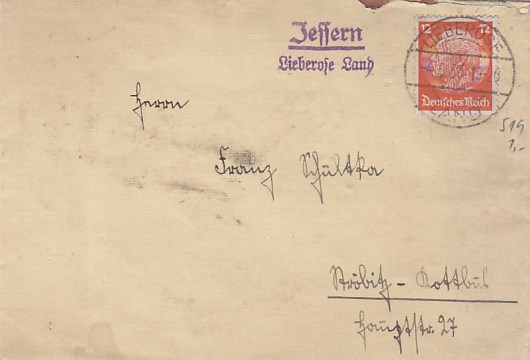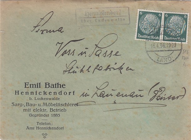 Landpoststempel auf Brief Hennickendorf Luckenwalde Geschäftspost 1936