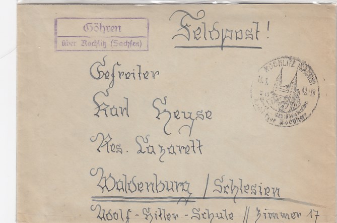 Landpoststempel auf Brief Göhren Rochlitz Sachsen Feldpoststempel 1942