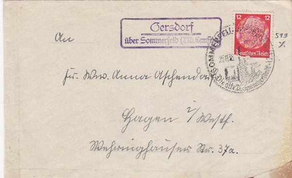 Landpoststempel auf Brief Gersdorf Sommerfeld Lausitz Polen