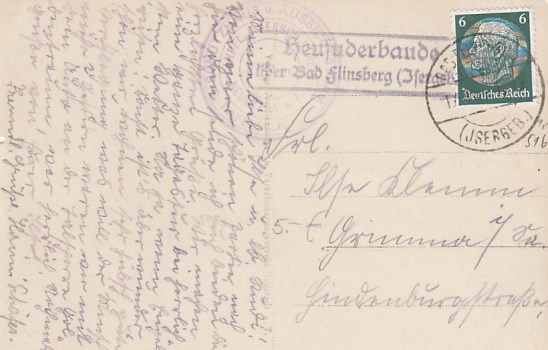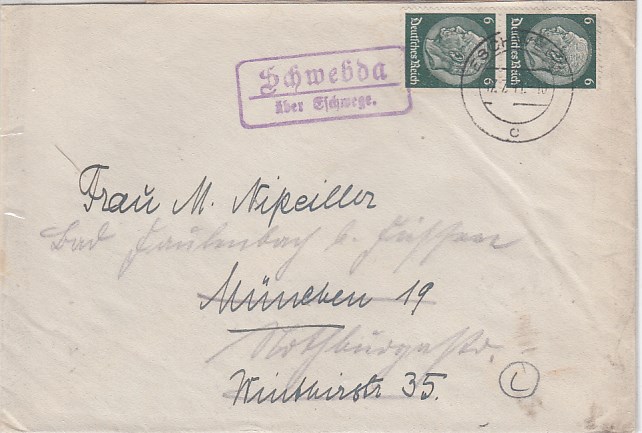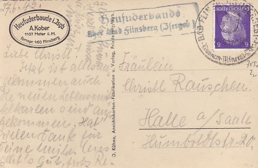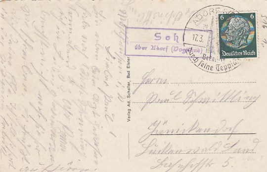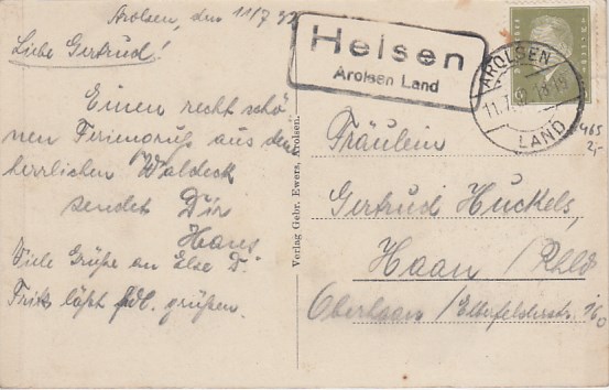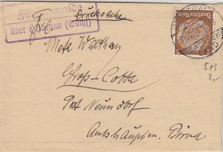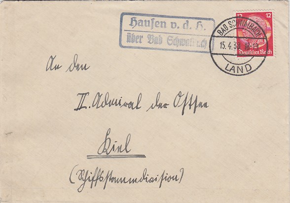 Landpoststempel auf Brief Hausen Bad Schwalbach 1938