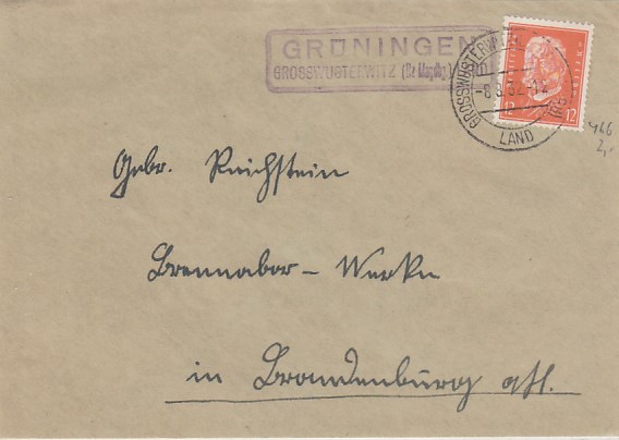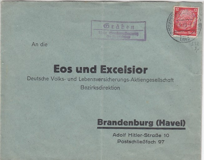 Landpoststempel auf Brief Gräben Großwusterwitz