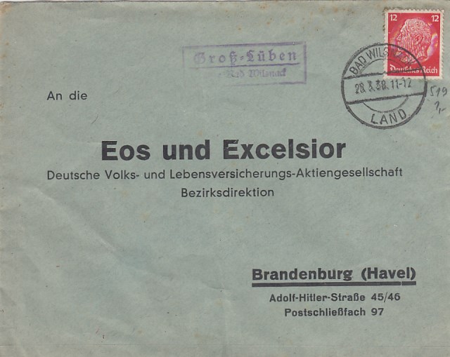 Landpoststempel auf Brief Groß-Lüben Bad Wilsnack