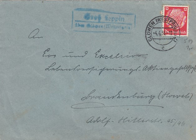 Landpoststempel auf Brief Groß Leppin Glöwen Westprignitz