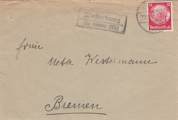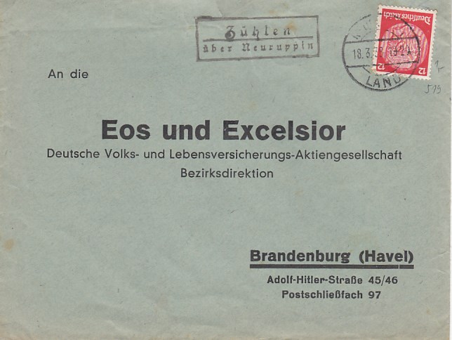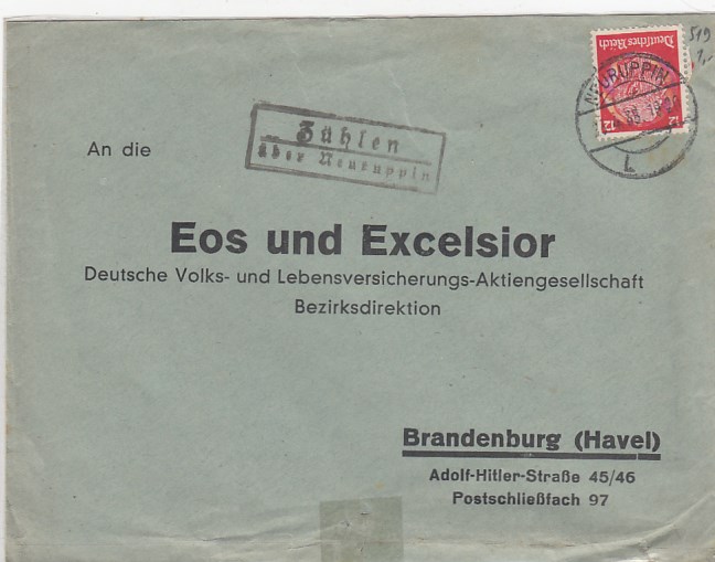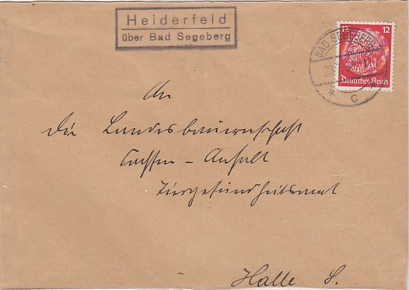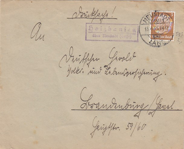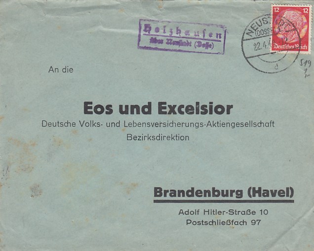 Landpoststempel auf Brief Holzhausen Neustadt Dosse 1935