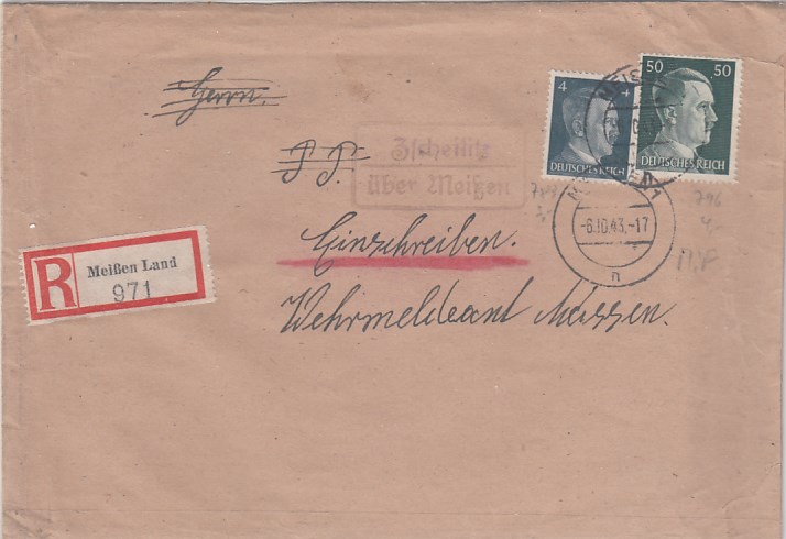 Landpoststempel auf Brief Zscheilitz Meißen Einschreiben