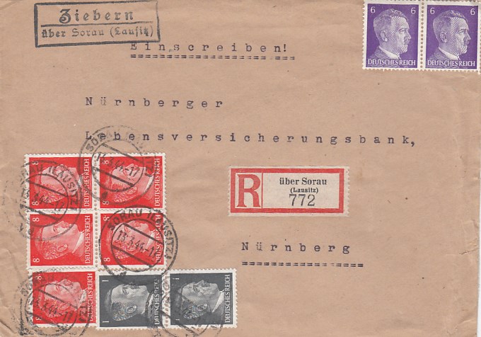 Landpoststempel auf Brief Ziebern Sorau Lausitz Einschreiben