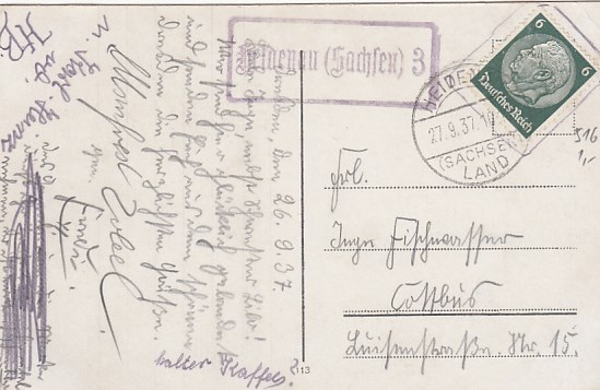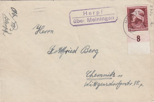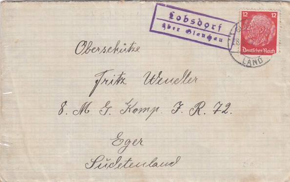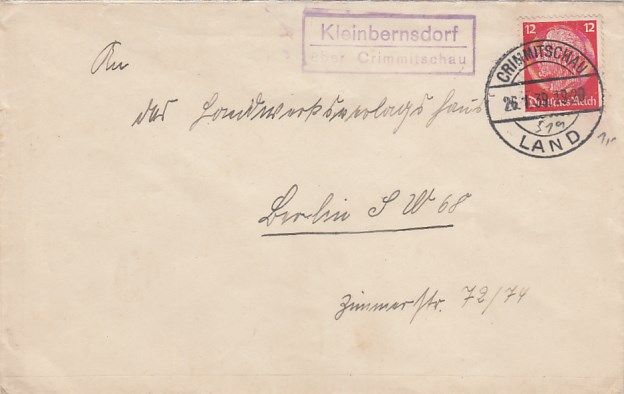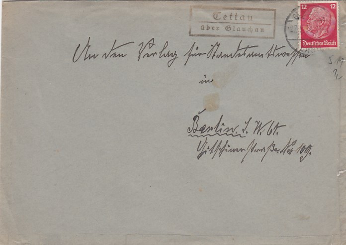 Landpoststempel auf Brief Tettau Glauchau Standesamt