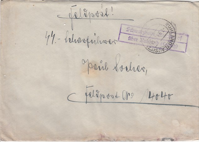 Landpoststempel auf Brief Schwarzheide Ruhland Feldpoststempel
