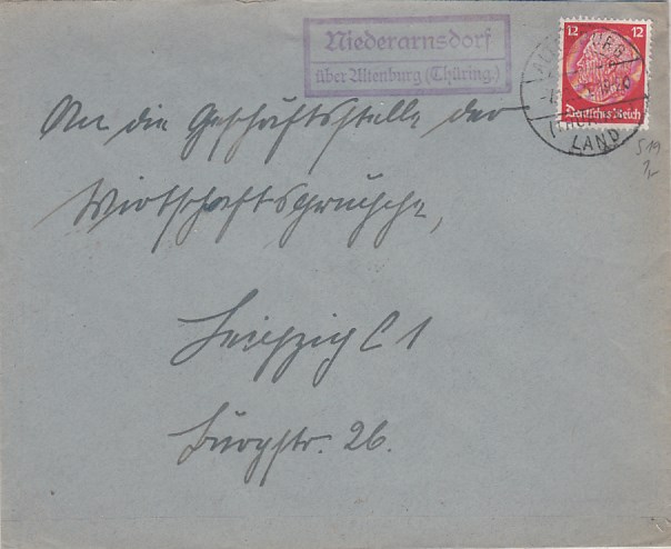 Landpoststempel auf Brief Niederarnsdorf Altenburg Thüringen