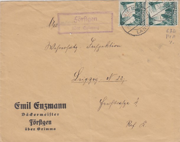 Landpoststempel auf Brief Förstgen Grimma Geschäftspost Bäckerei