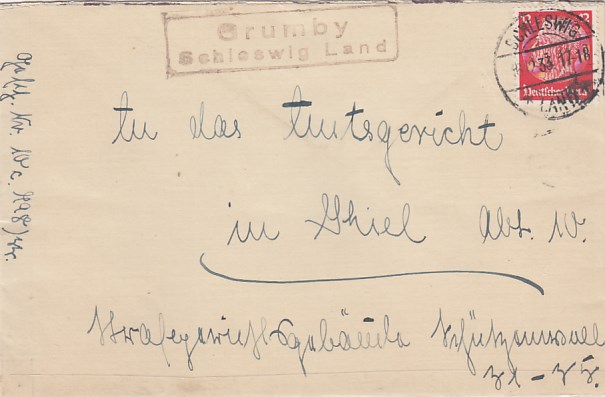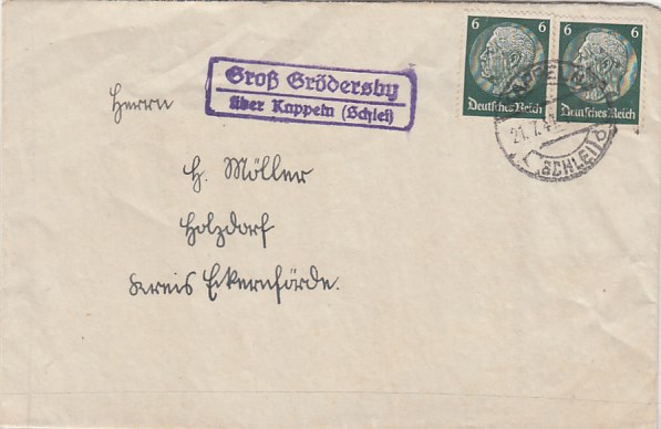 Landpoststempel auf Brief Groß Grödersby Großgrödersby Kappeln