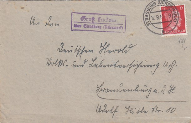 Landpoststempel auf Brief Groß Luckow Strasburg Uckermark
