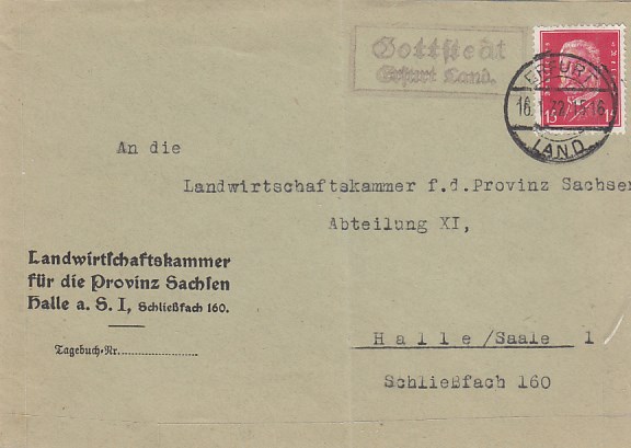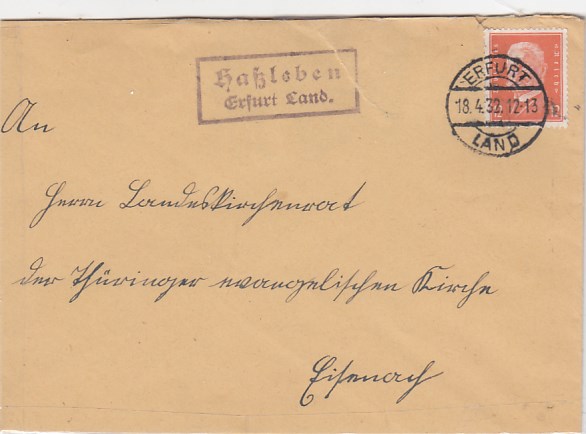Landpoststempel auf Brief Gottstedt Erfurt Geschäftspost Halle an der Saale