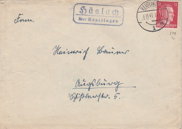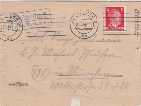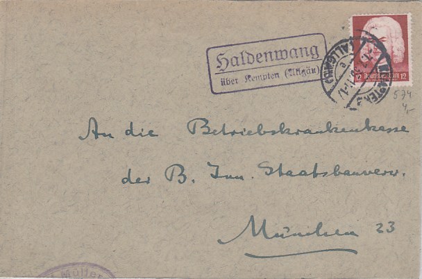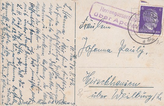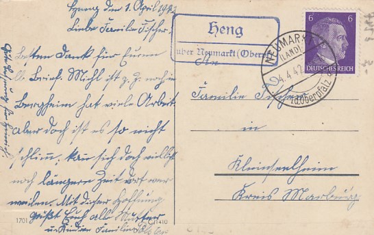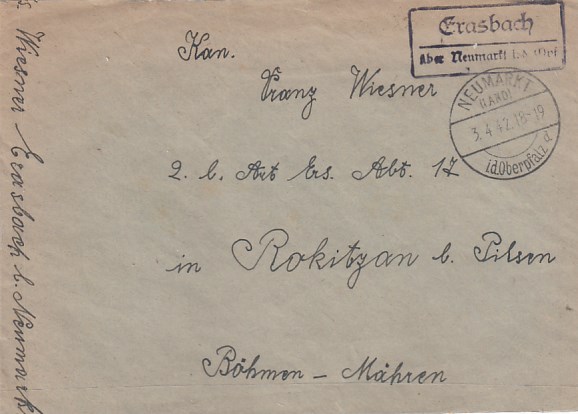 Landpoststempel auf Brief Erasbach Neumarkt Oberpfalz Feldpoststempel