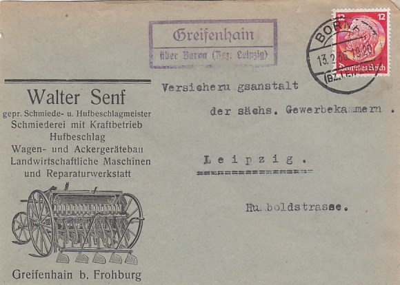 Landpoststempel auf Brief Greifenhain Borna Geschäftspost Frohburg Leipzig