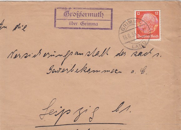 Landpoststempel auf Brief Groß Sermuth Grimma