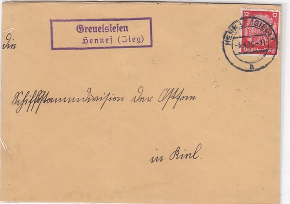 Landpoststempel auf Brief Greuelsiefen Hennef Sieg