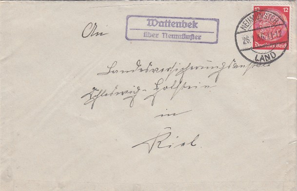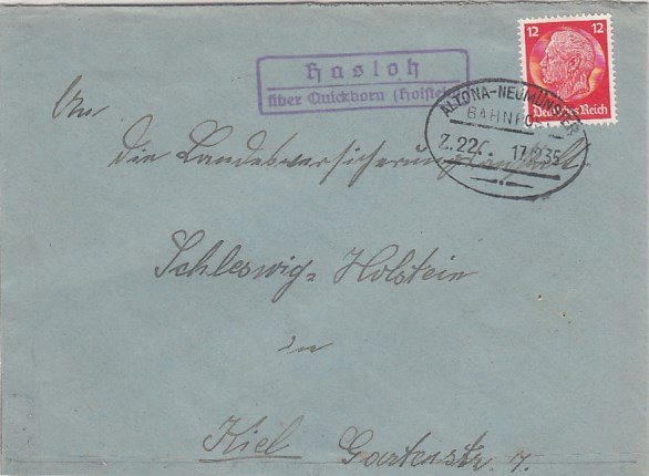 Landpoststempel auf Brief Hasloh Quickborn Bahnpoststempel Altona-Neumünster