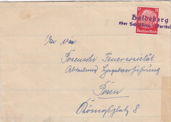 Landpoststempel auf Brief Haideberg Schildberg Wartheland nach Posen