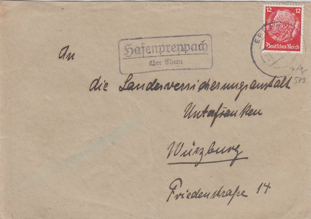 Landpoststempel auf Brief Hafenpreppach Ebern