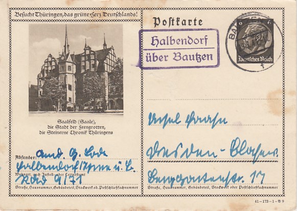 Landpoststempel Halbendorf Bautzen Ganzsache Saalfeld