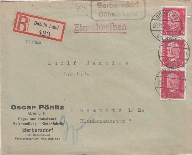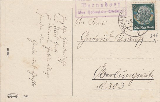 Landpoststempel Bernsdorf bei Hohenstein