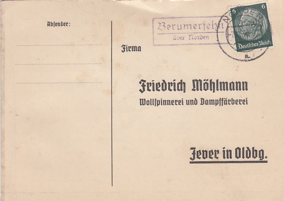 Landpoststempel Berumerfehn bei Norden Geschäftspost Jever