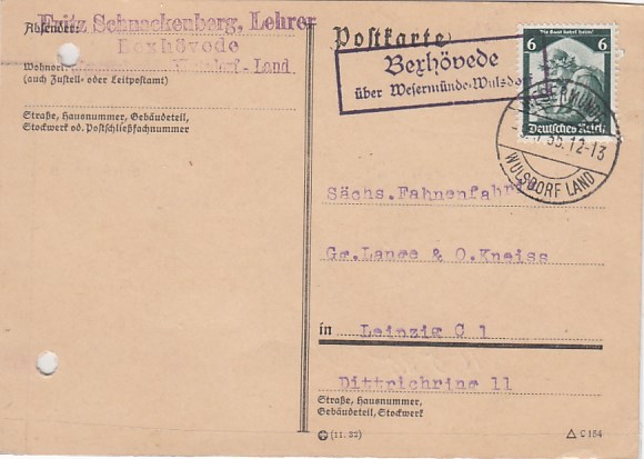 Landpoststempel Bexhövede bei Wesermünde-Wulsdorf 1935