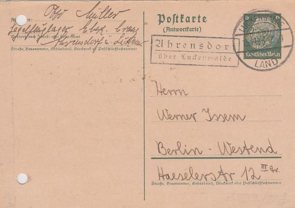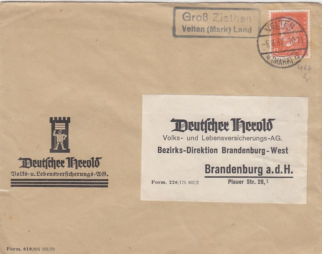 Landpoststempel auf Brief Groß Ziethen Velten Geschäftspost Herold Brandenburg Havel