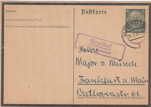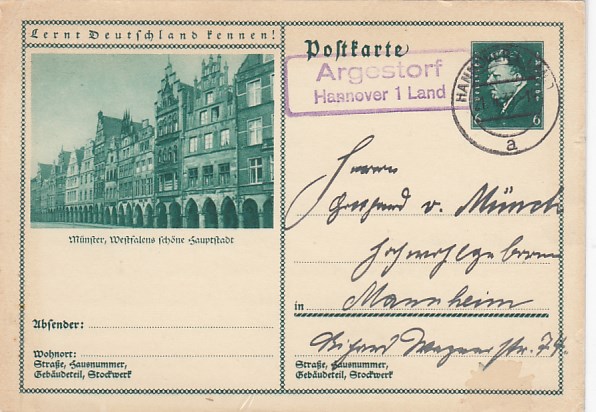 Landpoststempel Argestorf bei Hannover Ganzsache Münster