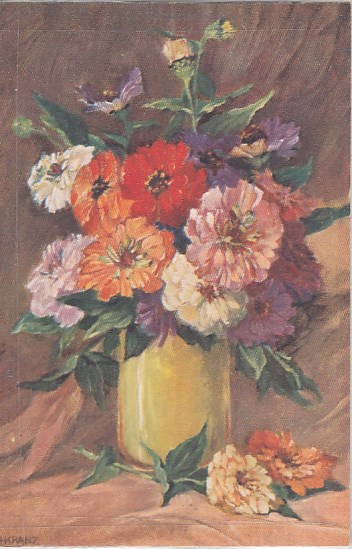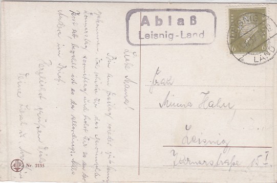 Landpoststempel Ablaß Leisnig-Land auf AK Blumen