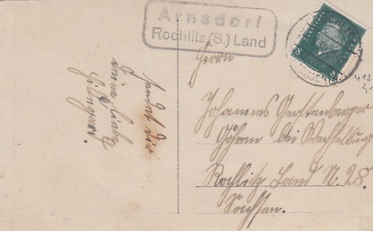 Landpoststempel Arnsdorf Rochlitz-Land auf Glückwunsch AK
