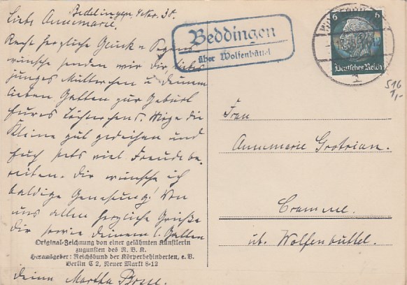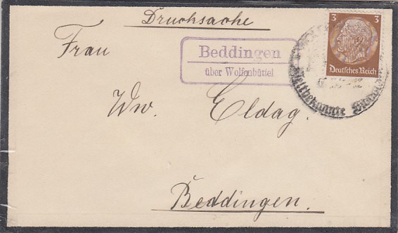 Landpoststempel auf Brief Beddingen Wolfenbüttel