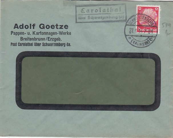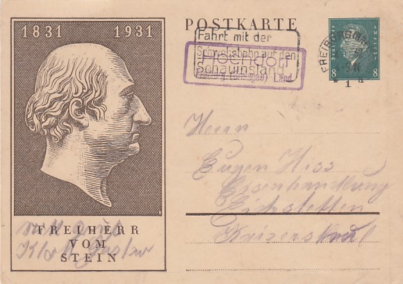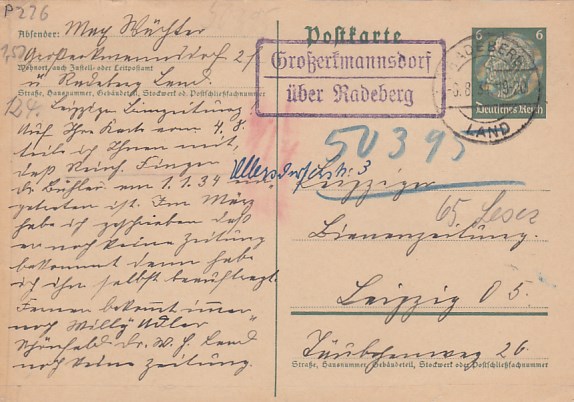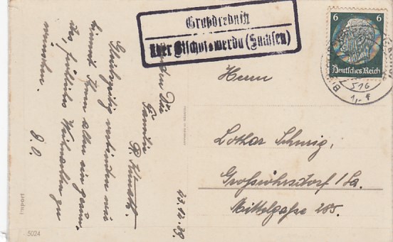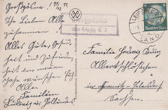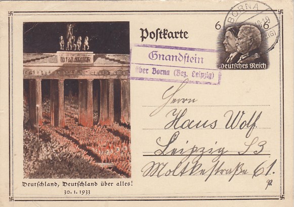 Landpoststempel Gnandstein über Borna auf Ganzsache 1933